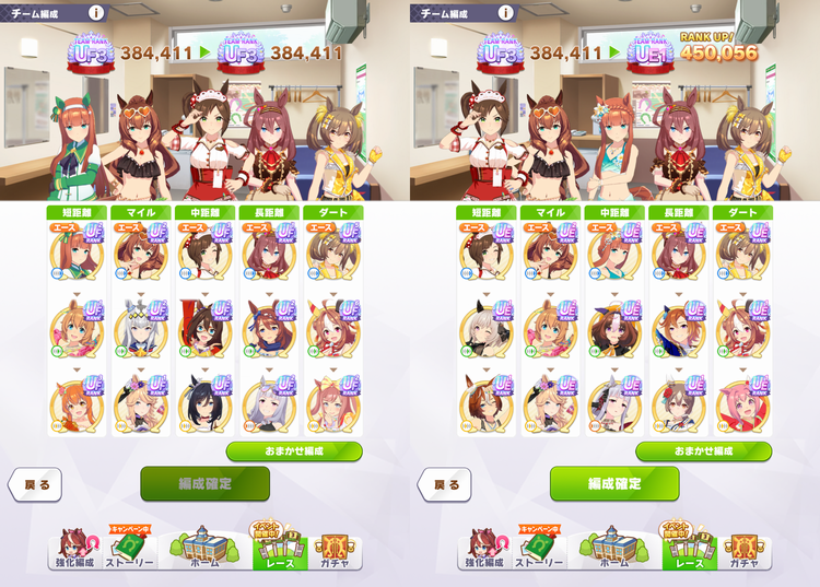 でもまだ育成序盤の完凸メイやエルが無かった頃に作ってたスズカさんやブルボン、あとはとりあえずこれでいいやってしてたウララやペラオも微調整して更新したいものだ。